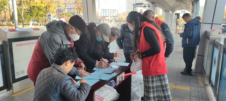 開展公交出行咨詢服務活動。12月8日下午,市公交公司和交通銀行的志愿者在解放路新都路、新都路解放路站臺開展綠色出行志愿服務活動,宣傳綠色出行理念和公交便民舉措。發(fā)放《公交出行指南》、《鹽城市SRT、BRT線路、主要旅游景點商業(yè)街區(qū)、交通樞紐乘車指南》、《防范電信網絡詐騙宣傳手冊》,指導市民領取支付寶優(yōu)惠券進行掃碼乘車,向市民普及“我的鹽城”app公交實時查詢功能,提供公交出行咨詢服務,發(fā)放冬日出行暖心大禮包,F(xiàn)場開展市民問卷調查,征求市民對公交發(fā)展的意見建議,廣泛動員社會公眾積極參與到綠色出行行動中。