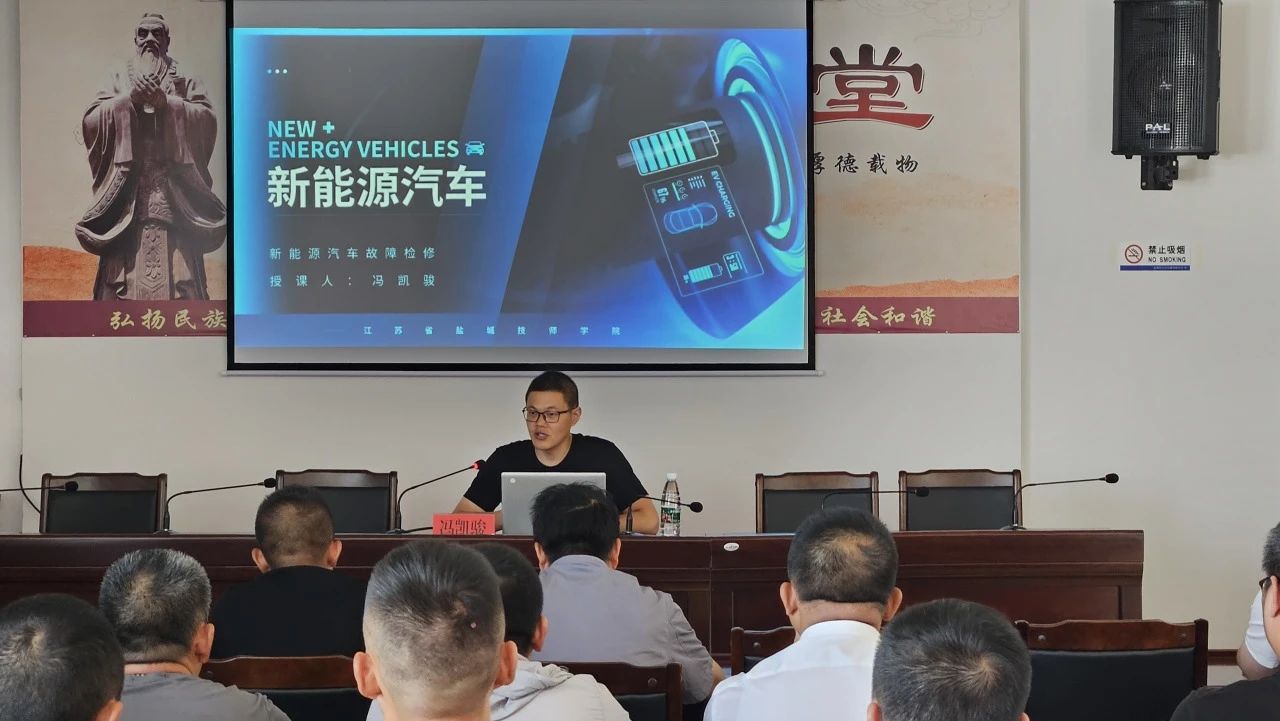 此次培訓(xùn)邀請了鹽城技師學(xué)院馮凱駿老師授課,培訓(xùn)過程中,馮老師詳細(xì)講解了新能源車輛的構(gòu)造、工作原理以及常見故障的排查與處理方法。通過生動的案例分析和實際操作演示,馮老師將復(fù)雜的技術(shù)知識以簡單易懂的方式傳授給了每一位參訓(xùn)人員,大家對新能源車輛的維修技術(shù)有了更深入的了解和掌握。