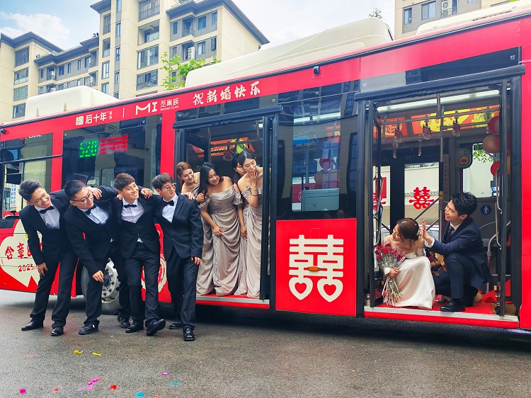 2025年5月5日,正值五一黃金周假期尾聲,鹽城街頭迎來一場別具匠心的婚禮——新郎含章與新娘十一選擇“520”號定制公交婚車作為迎親車隊,以低碳環(huán)保的方式開啟人生新篇章。這場婚禮將環(huán)保時尚婚慶理念與節(jié)日氛圍巧妙融合,構(gòu)成了假期中一道溫馨而獨特的城市風(fēng)景線。