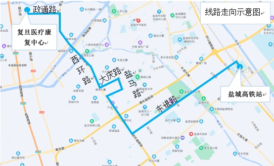線(xiàn)路起訖點(diǎn):鹽城高鐵站至鹽城復(fù)興醫(yī)院。