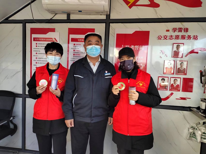 活動之余,還為默默堅守在學雷鋒公交志愿服務站的2名常駐志愿者們送上了保溫杯、潤喉糖等慰問品,叮囑她們在做好便民導乘服務的同時要做好自我防護,確保自身安全。