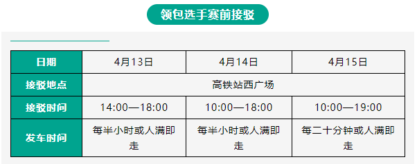 4月13日—4月18日參賽選手憑參賽號(hào)碼布可免費(fèi)乘坐鹽城市市內(nèi)公交。4月13日—4月15日開設(shè)鹽城高鐵站至鹽南體育中心的選手接駁專線,領(lǐng)包選手可在鹽城高鐵站免費(fèi)乘坐公交車直達(dá)鹽南體育中心領(lǐng)取賽事包。