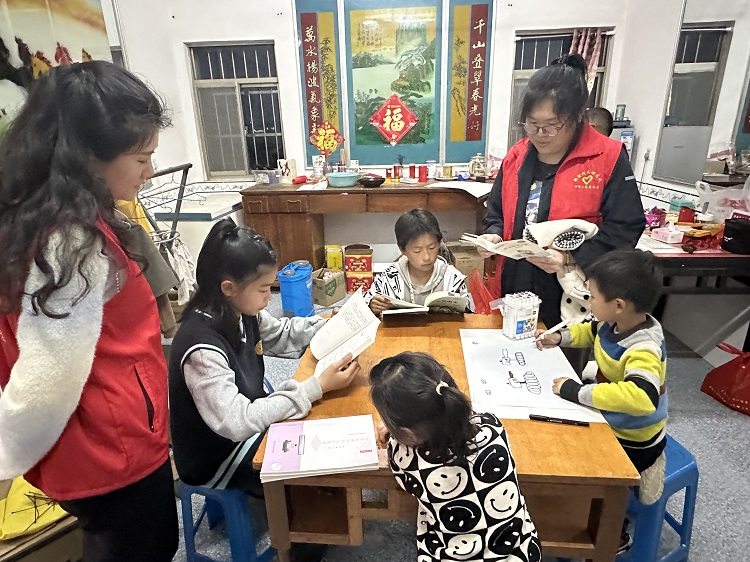 活動(dòng)中,志愿者與孩子們親切交流,了解他們的生活和學(xué)習(xí)情況,鼓勵(lì)孩子們要以積極的心態(tài)面對(duì)暫時(shí)的困境,用功讀書,用知識(shí)改變命運(yùn)。志愿者王星云、陸益帶領(lǐng)孩子們共同閱讀了《小英雄雨來》《論語》精彩片段,并向他們贈(zèng)送了閱讀書籍和文房四寶等學(xué)習(xí)用品。