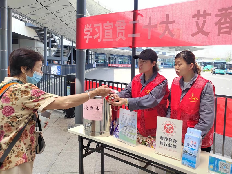 活動現(xiàn)場設(shè)置了《新時代十年的偉大變革》和《鹽城公交十年》宣傳展板,黨員志愿者錢麗從理論創(chuàng)新、黨的領(lǐng)導(dǎo)、戰(zhàn)略部署、脫貧攻堅(jiān)、新發(fā)展理念等十六個方面,對新時代十年黨和國家事業(yè)取得的歷史性成就和歷史性變革作了全面宣講解讀;志愿者薛萍從城鄉(xiāng)公交一體化、一小時免費(fèi)換乘、“實(shí)時公交”應(yīng)用等十二個方面,生動講述了鹽城公交櫛風(fēng)沐雨、砥礪奮進(jìn)的十年發(fā)展歷程。