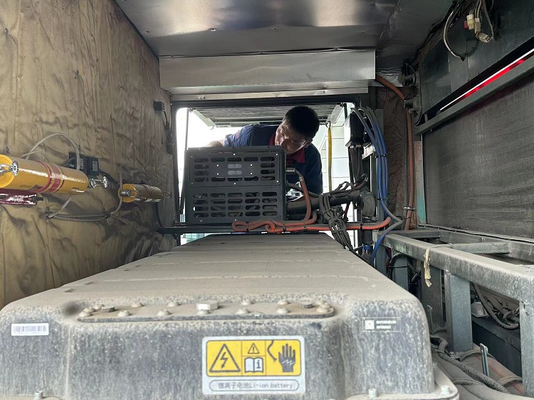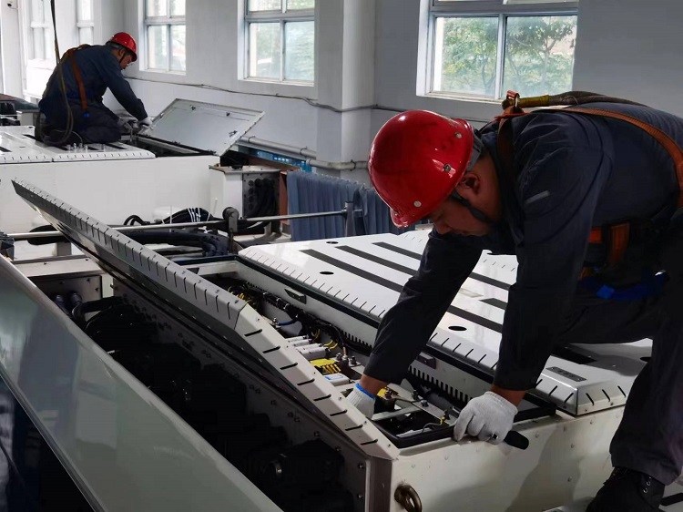 夏日炎炎,車(chē)廂內(nèi)的溫度即便是敞開(kāi)車(chē)窗也依然讓人覺(jué)得悶熱,這時(shí)候汽車(chē)空調(diào)便開(kāi)始發(fā)揮作用。由于公交車(chē)輛空調(diào)大部分都在車(chē)輛的頂部,給維修工作帶來(lái)很大困難。維修人員需要做好充分安全防護(hù),才能有效對(duì)車(chē)輛空調(diào)進(jìn)行檢修。在修理分公司空調(diào)專(zhuān)項(xiàng)維保場(chǎng)地上,修理人員必須佩戴好高空作業(yè)專(zhuān)用安全繩,登上安全作業(yè)架,在充分保障維修人員安全的情況下進(jìn)行空調(diào)檢修工作。